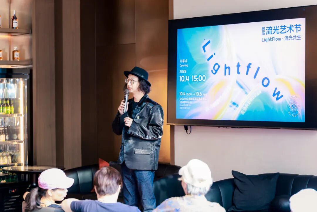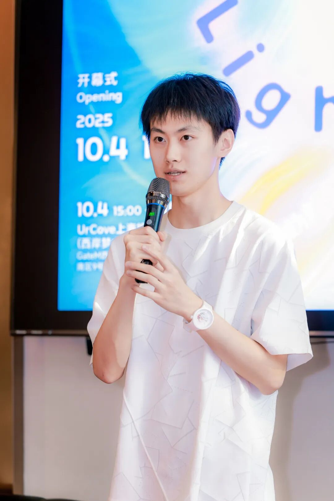 最后,作为本次艺术节最年轻的00后策展人,赵佳铭在发言中表示,此次展出的许多作品皆为艺术家对“光”的独到阐释。他邀请所有观众亲临现场,在黄浦江畔的秋风中漫步,感受城市脉动,探索艺术与未来交织的无限可能。他代表策展团队向所有合作伙伴致以谢意,感谢他们对LightFlow流光艺术节的大力支持,并祝愿所有观众收获一段愉悦而深刻的艺术体验。